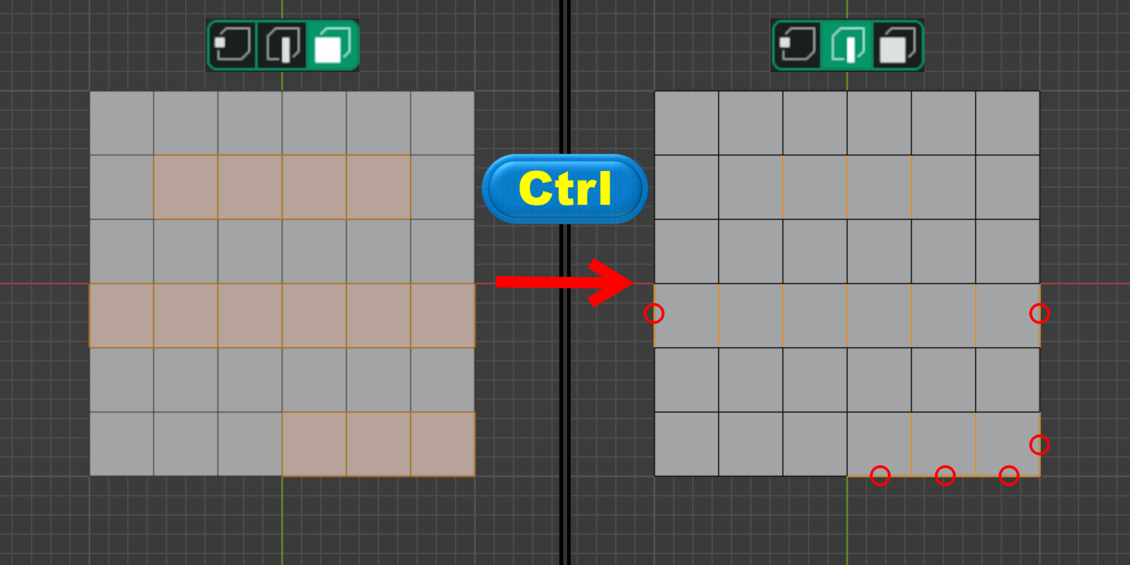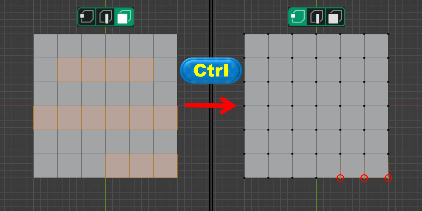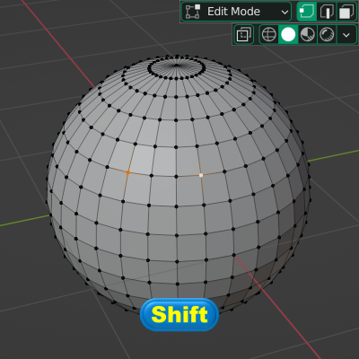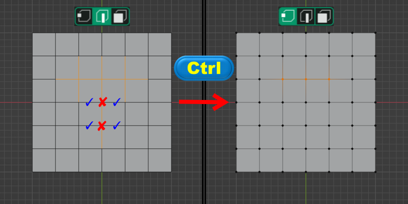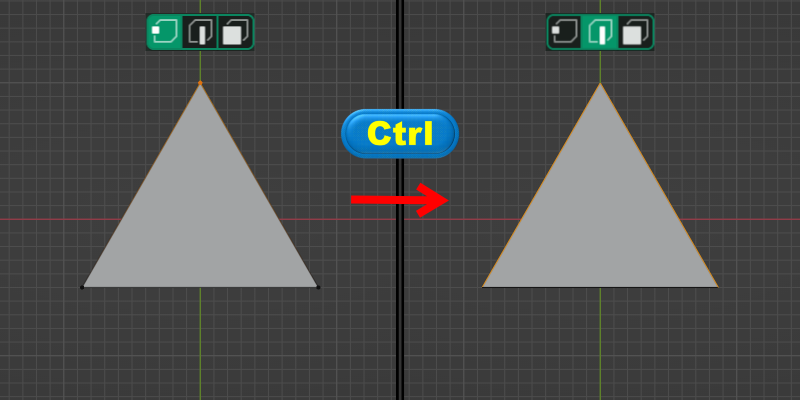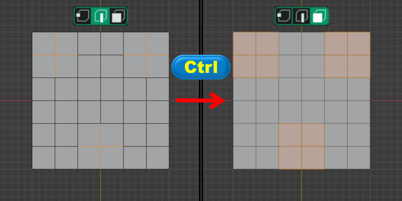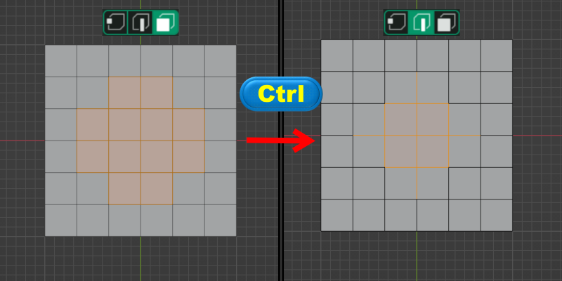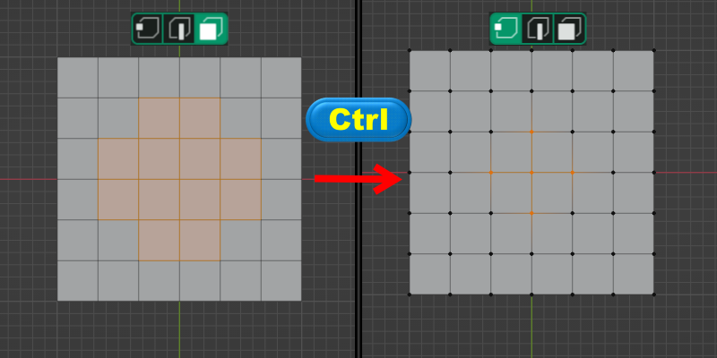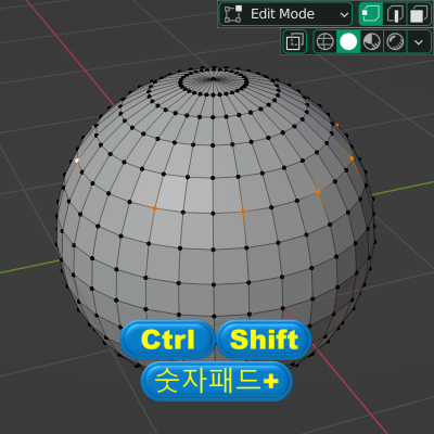◈ <Ctrl> 키를 누른 상태에서 점 => 선 => 면의 방향으로 전환을 하면 연계된 요소를 확장합니다.