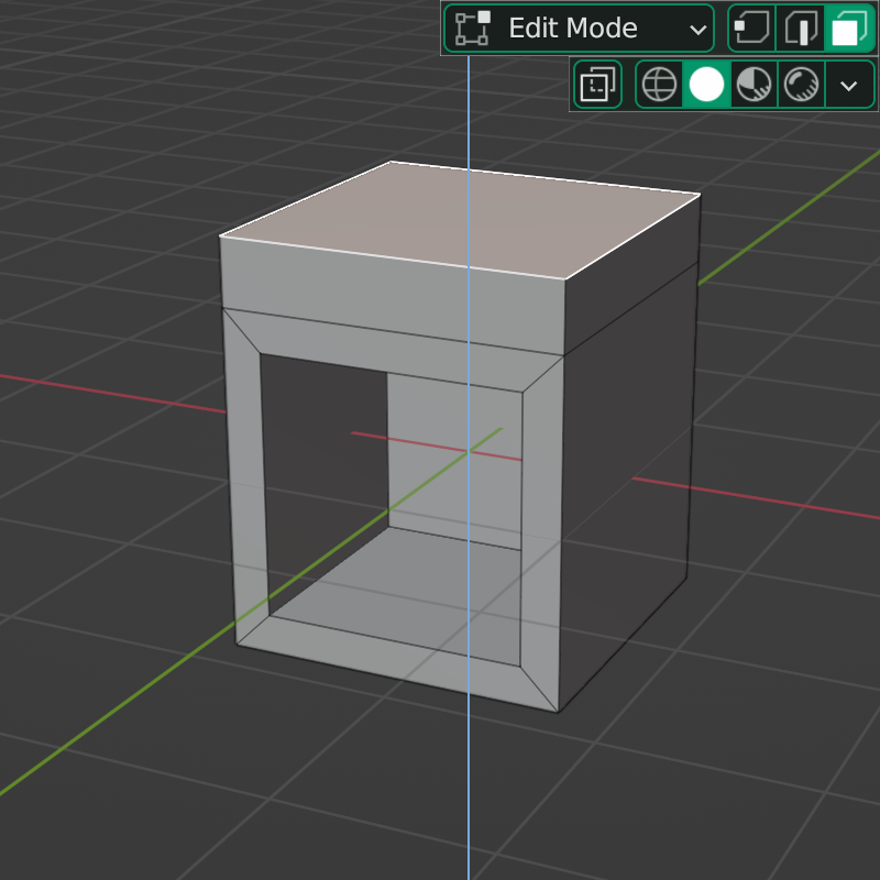 마찬가지로 상자의 윗면을 선택하고 돌출한 후 마우스 우 클릭을 해 보았습니다. 역시 그러데이션 된 선이 보이지 않는군요.