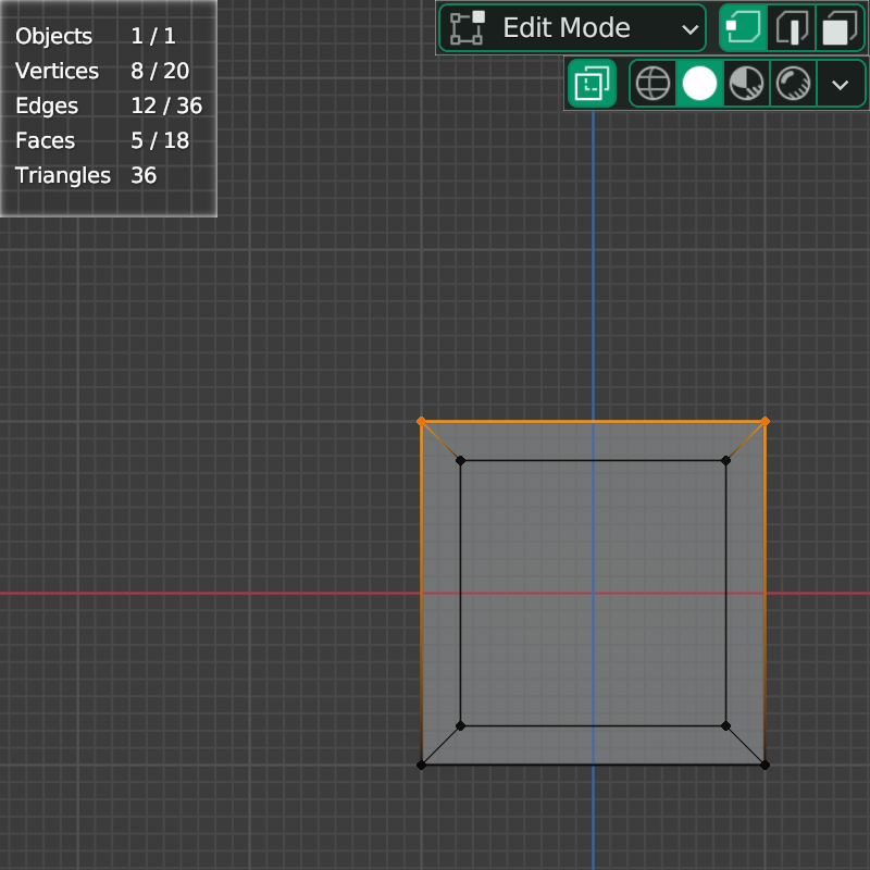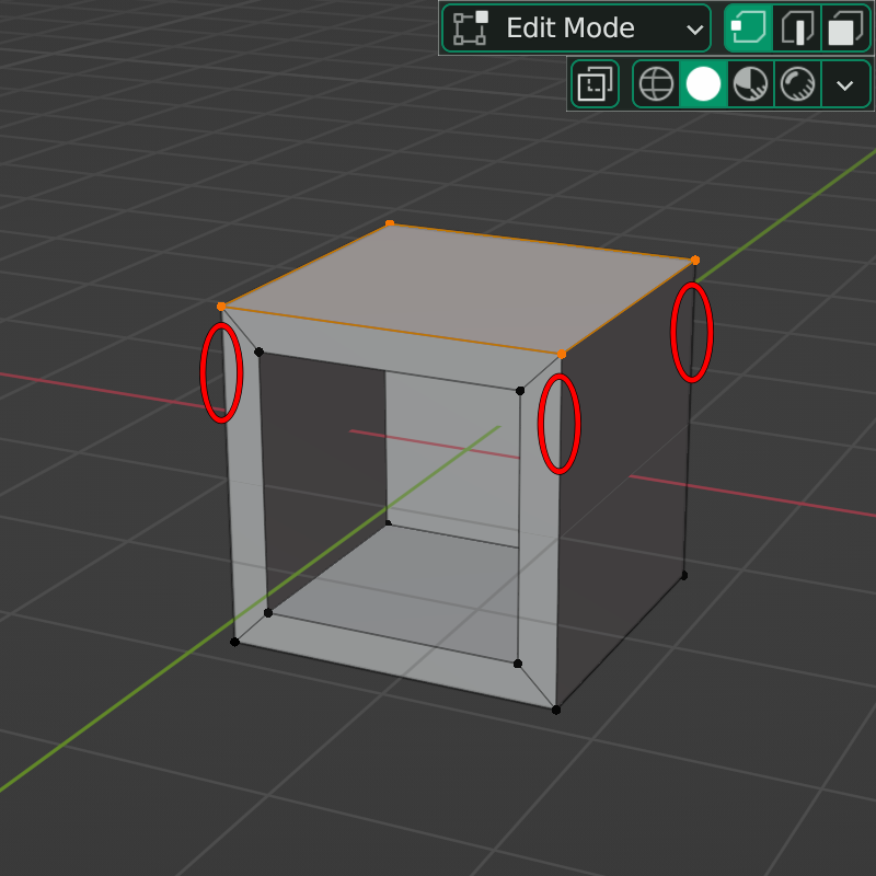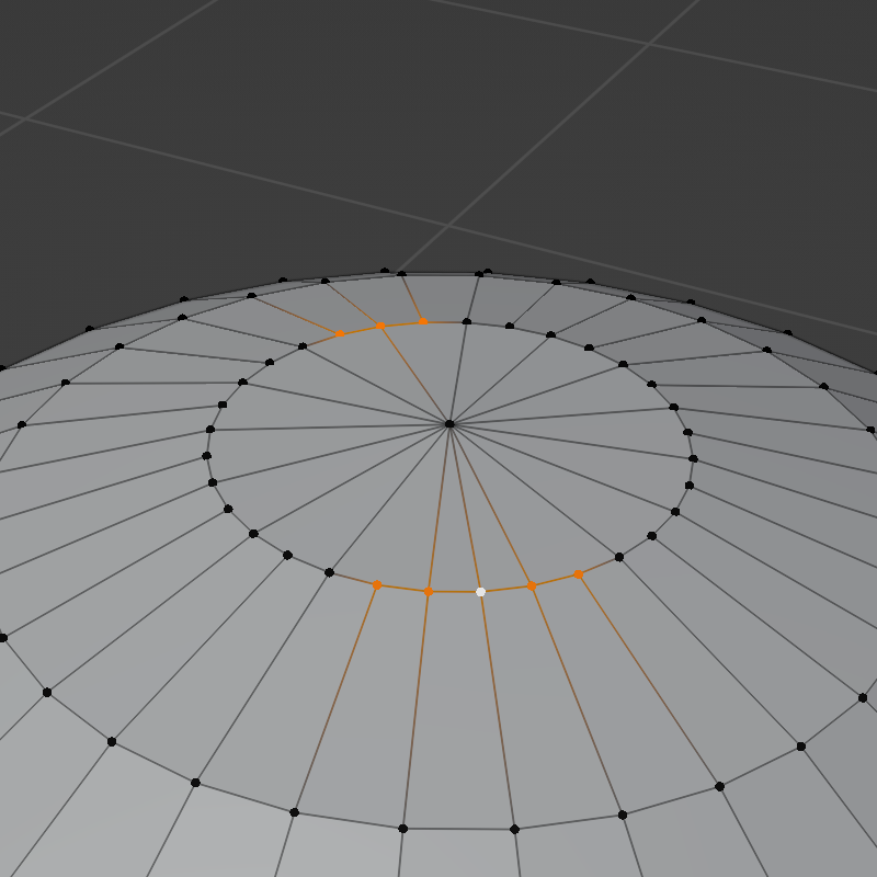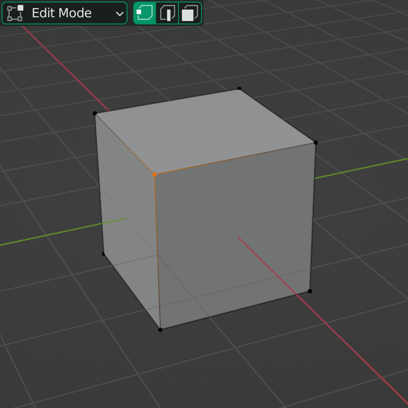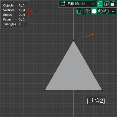 그리고 아주 중요한 포인트이지만 처음 Blender를 접하는 분들은 간과할 수 있는 부분이 있습니다. 선택된 점 주변의 Edge들을 자세히 보시면 그라디언트로 색이 퍼져 있는 것을 알 수 있습니다. Edge들은 비록 선택이 되어 있지 않지만 이 Vertex와 아주 밀접한 관계를 가지고 있다고 볼 수 있습니다. 다른 의미로 링크되어 있다고 표현할 수 있습니다.