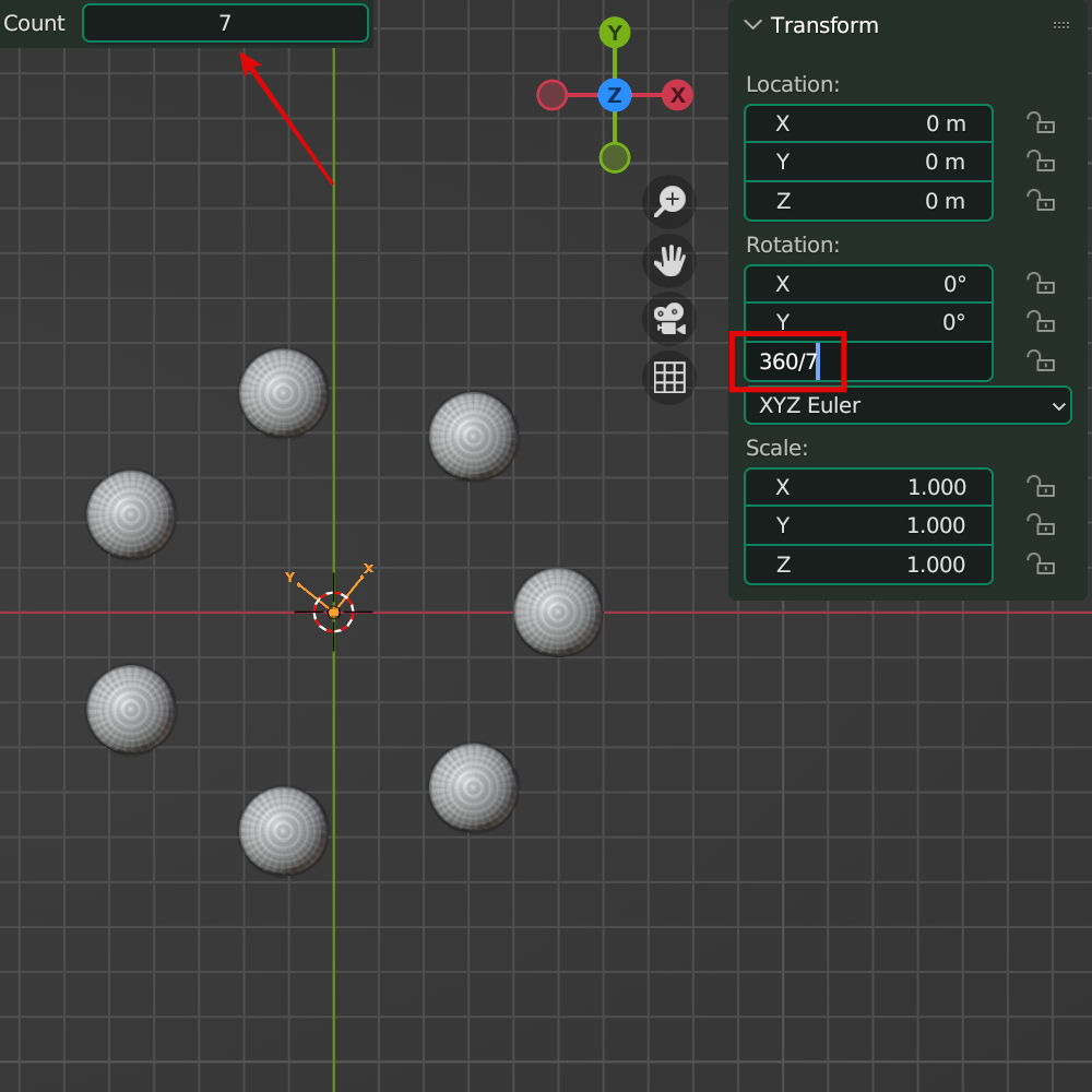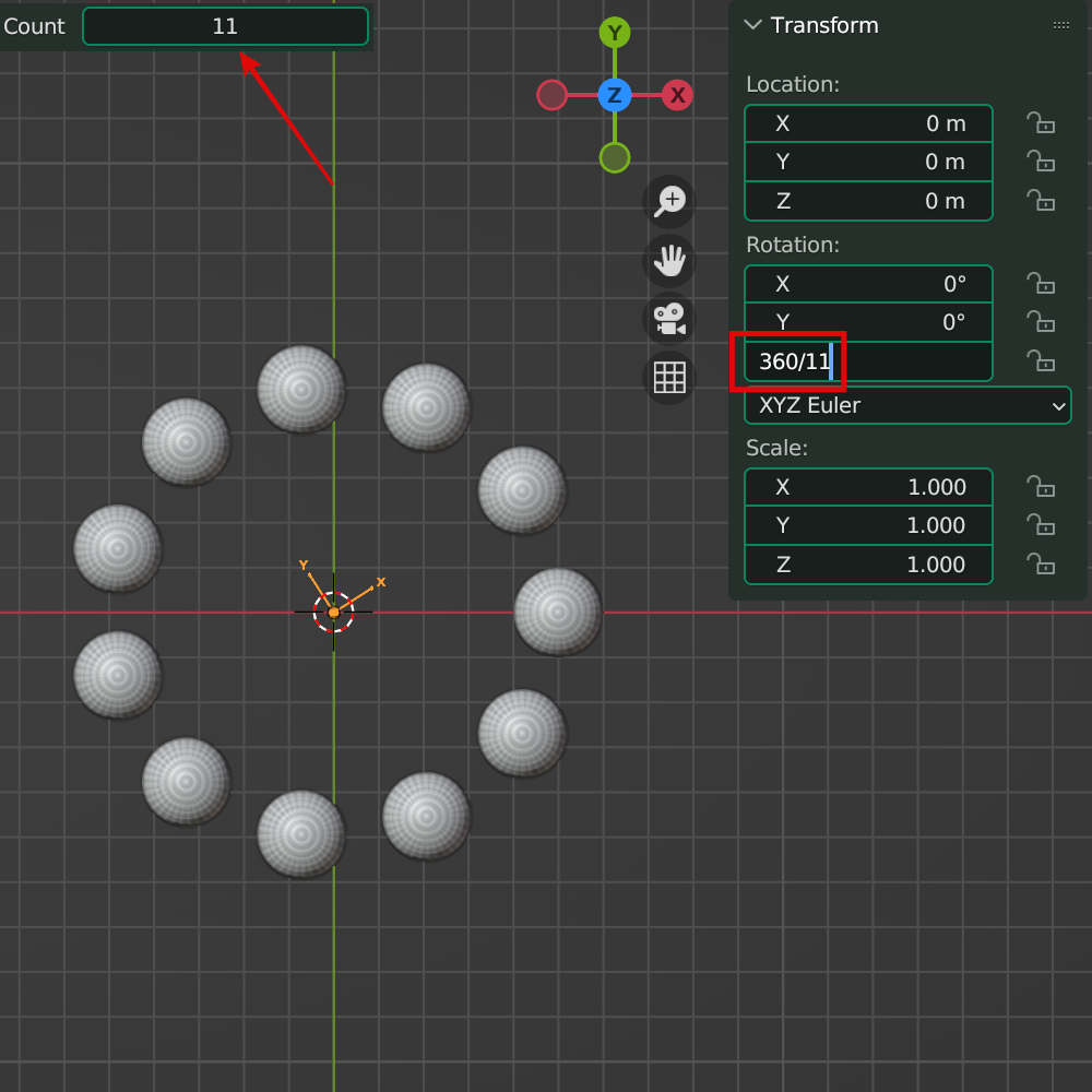 [Count] 개수가 3개라면 120도 4개라면 90도를 입력하면 되겠지만 7개라든지 11개라면 계산하기가 힘들 것입니다.