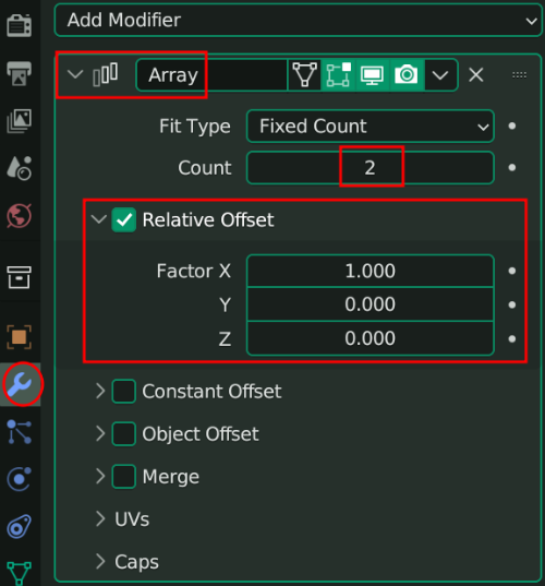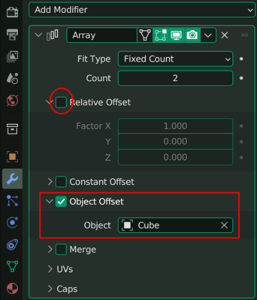 6. [Array] 옵션에서 [Relative Offset]과 [Constant Offset]은 체크해제 한다