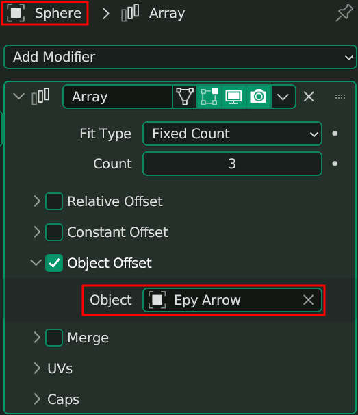 5. 배열을 할 객체를 선택하고 [Modifier] > [Array]를 생성한다.