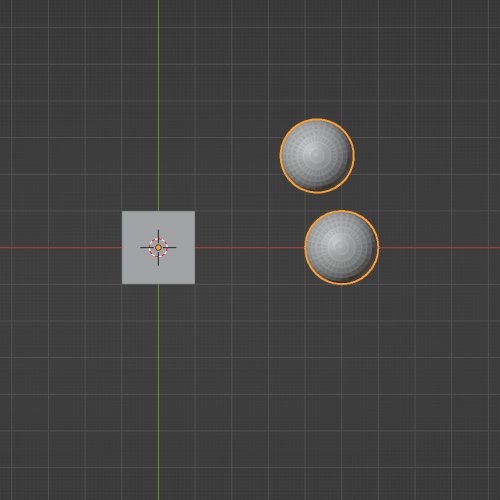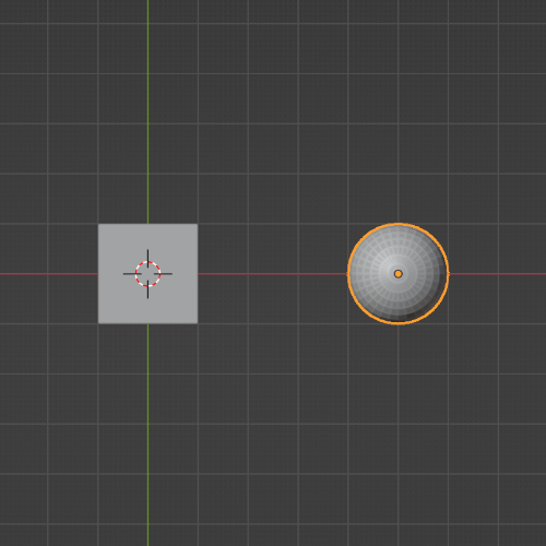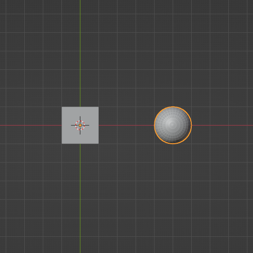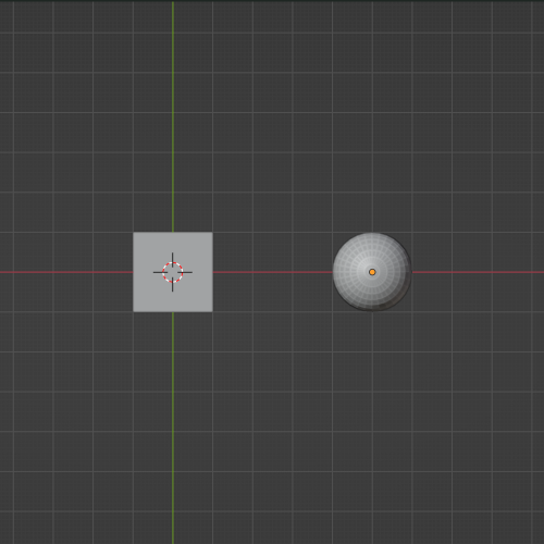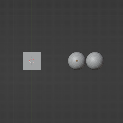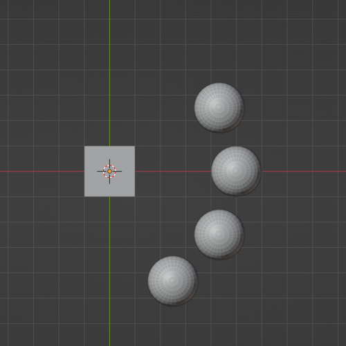 위와 같이 오브젝트 2개를 준비했습니다. 큐브를 중심으로 스퀘어를 원의 형태로 배열을 하려고 합니다. 눈여겨봐야 할 것은 Origin의 위치입니다. 큐브의 [Origin]은 자신의 중심에 있고, 3D Cursor는 큐브의 Origin과 같은 위치에 있습니다. 스퀘어의 [Origin]은 자신의 중심에 있습니다. 이 상태에서 [Modifier]에서 [Array]를 적용해 보겠습니다.