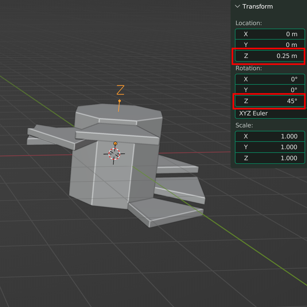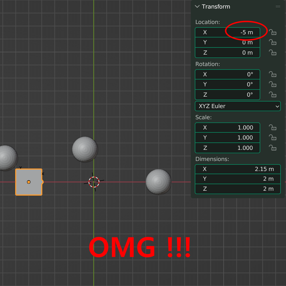 결과 값이 음수이므로 시계방향으로 움직인 것 입니다. 마찬가지로 [Transforms]의 연산에 의해 값이 결정되므로 최대한 단순화 시키고 직관성을 높이기 위해 [Origin] 위치를 맞추고 둘 중에 하나는 가급적 초기화 해 주어야 합니다.