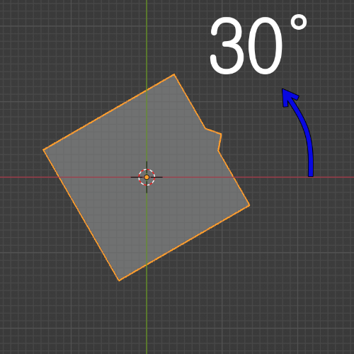스퀘어의 [Z] 축에 30을 입력하였습니다. 우측의 그림을 보면 시계반대방향으로 30도만큼 움직인 것으로 보입니다. 그런데 그것은 틀렸습니다.