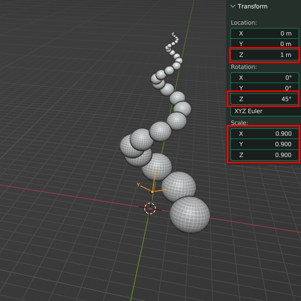3. 배열을 할 객체의 [Rotation & Scale] 초기화 : <Ctrl + A>
