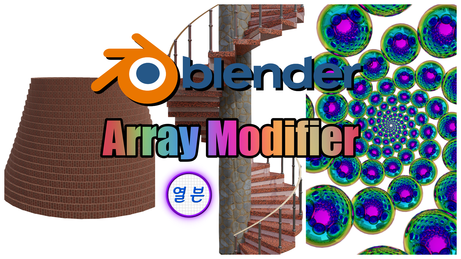 직선 방향으로 흐르는 배열은 매우 간단하지만 원형배열은 간단하지가 않습니다. 그나마도 회전을 하지 않은 객체라면 쉽게 할 수 있는 편이기는 합니다. 문제는 기준이 되는 객체가 기울어져 있을 경우인데요. 이 때는 문제가 복잡 해집니다. 그래서 블렌더의 [Array] 특성을 먼저 이해하는데 초점을 맞추어 보겠습니다. 이어서 다음시간에는 기울어진 객체를 중심으로 원형배열을 하는 방법과 조금은 어려울 수 있지만 [Driver]에 대해 알아보고 자동으로 면을 따라서 움직이는 원형배열도 다루어 보도록 하겠습니다.